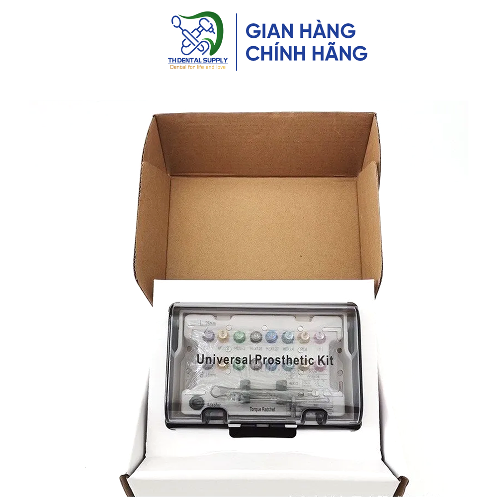 Universal Prosthetic Kit là bộ dụng cụ chuyên nghiệp, được thiết kế để hỗ trợ các quy trình cấy ghép nha khoa với độ chính xác cao. Sản phẩm phù hợp với mọi thương hiệu implant phổ biến, giúp các bác sĩ tiết kiệm thời gian và tối ưu hóa hiệu quả điều trị.