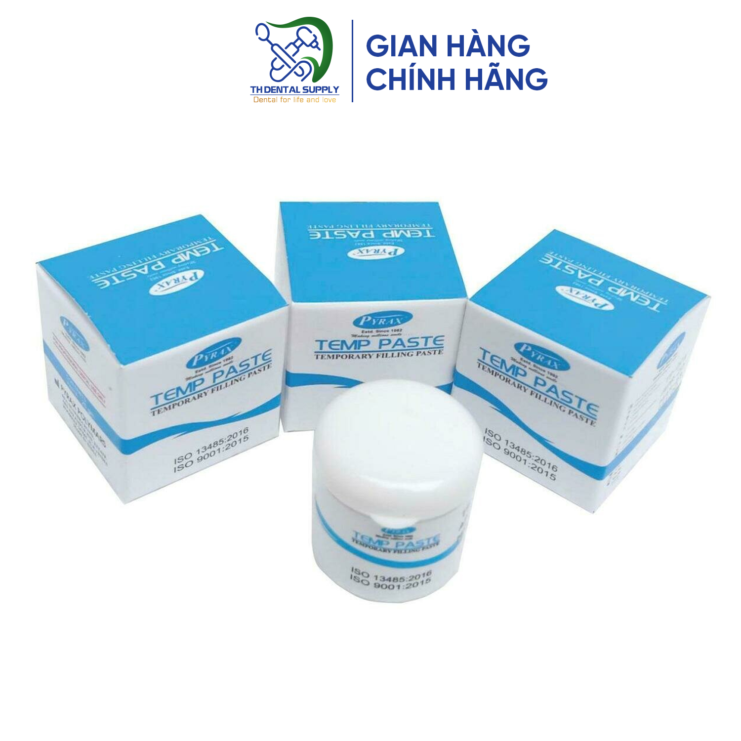Temp Paste là vật liệu trám tạm thời đến từ thương hiệu Pyrax, Ấn Độ, được sử dụng rộng rãi trong nha khoa để phục hồi tạm thời các lỗ sâu răng và bọc mão răng tạm thời. Với đặc tính kết dính cao, khả năng cản quang và dễ dàng sử dụng, Temp Paste là lựa chọn hàng đầu cho các bác sĩ nha khoa trong việc trám bít an toàn các ống thuốc và bảo vệ tạm thời vùng điều trị khỏi vi khuẩn. Sản phẩm có độ ổn định tốt, giữ kín khu vực trám, giúp bảo vệ răng trong thời gian ngắn.